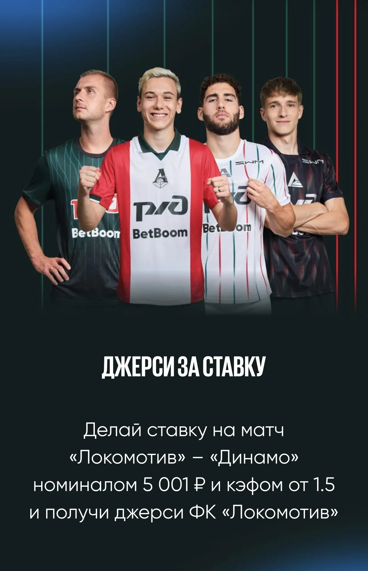 Гарантированный приз в БК BetBoom в виде джерси ФК «Локомотив» выдаётся игрокам за ставку на матч.
