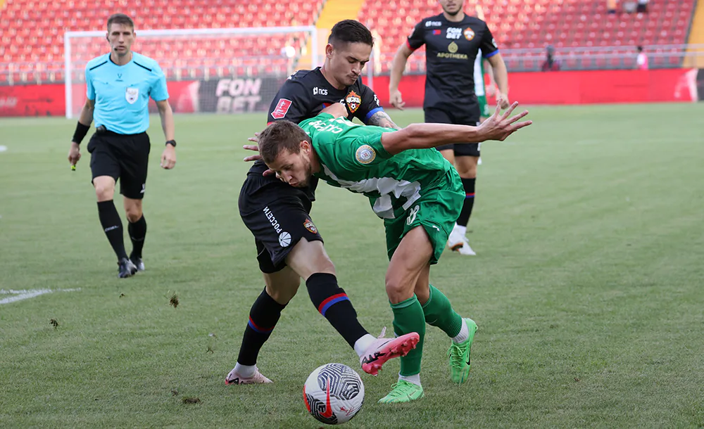 Первый тревожный звоночек в матче прозвучал над головой Владислава Торопа: на девятой минуте его тёзка Камилов выстрелил из-за штрафной, но, к счастью армейцев, попал в перекладину. Пожалуй, это был самый опасный момент первого тайма. Дальше ЦСКА больше владел мячом, но не владел преимуществом.
