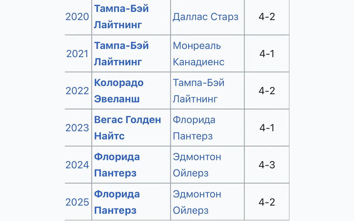 Финальные серии Кубки Стэнли с 2020 года